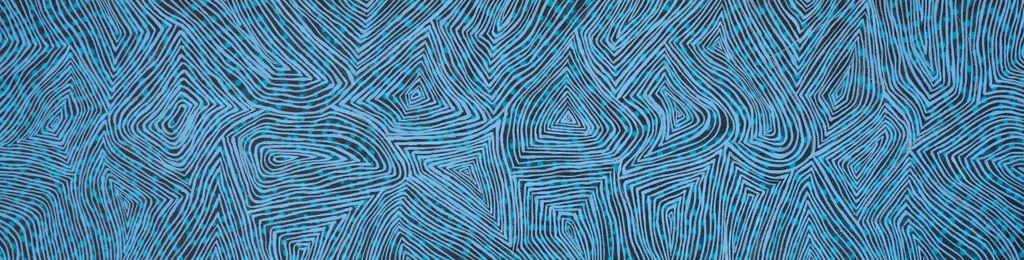 There are many Salt flats in the Pilbara.This painting depicts the water flowing underneath with the salt forming on top in ripples to show the movement of the ocean.