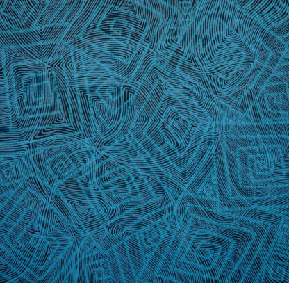There are many salt flats in the Pilbara.This painting depicts the water flowing underneath with the salt forming on top in ripples to show the movement of the ocean.